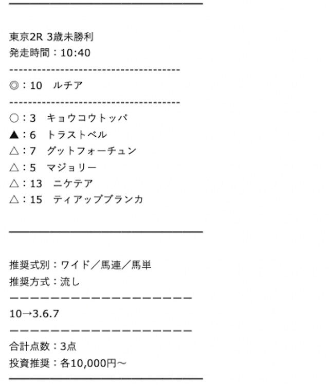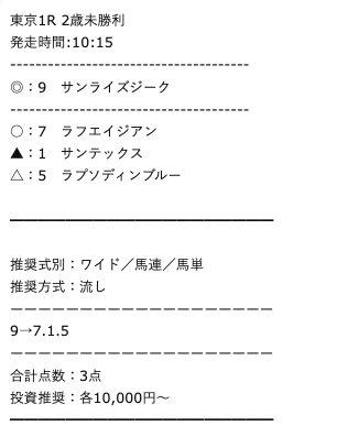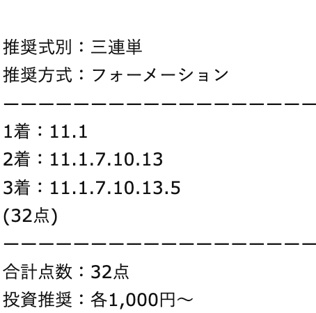 また、1点あたりの推奨投資金額を見るに、一点予想屋本舗は『確証』に近い情報を手に入れているのでしょう。