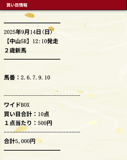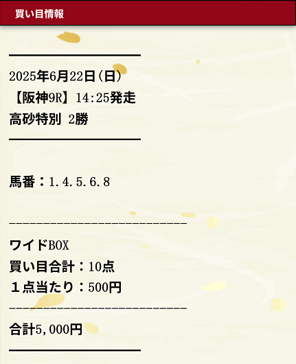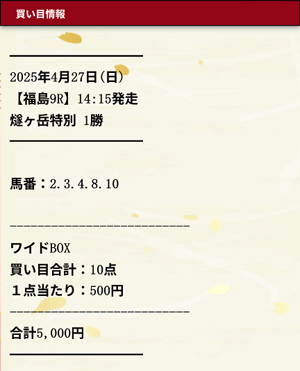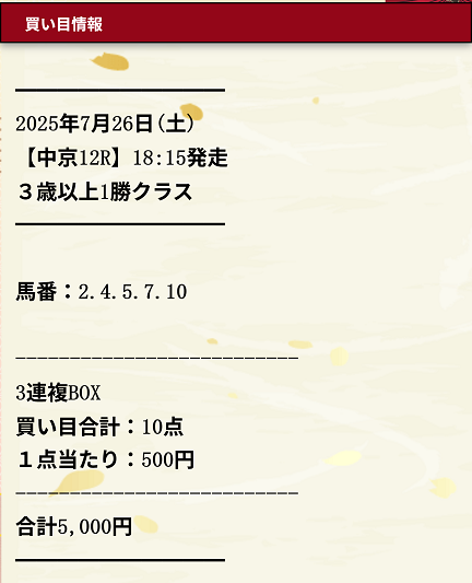 | 1レースの投資金額 | 10,000〜20,000円 |