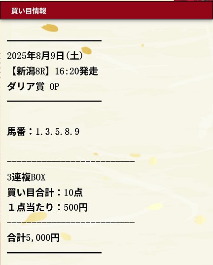 8月9日新潟8R