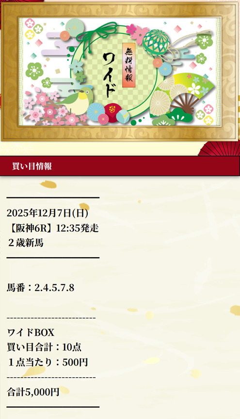 - 2024.04.07無料予想で163,500円の払い戻しに成功!