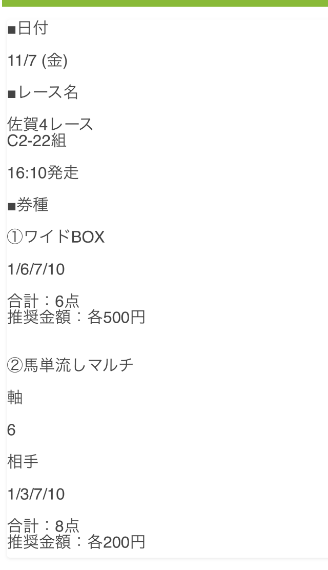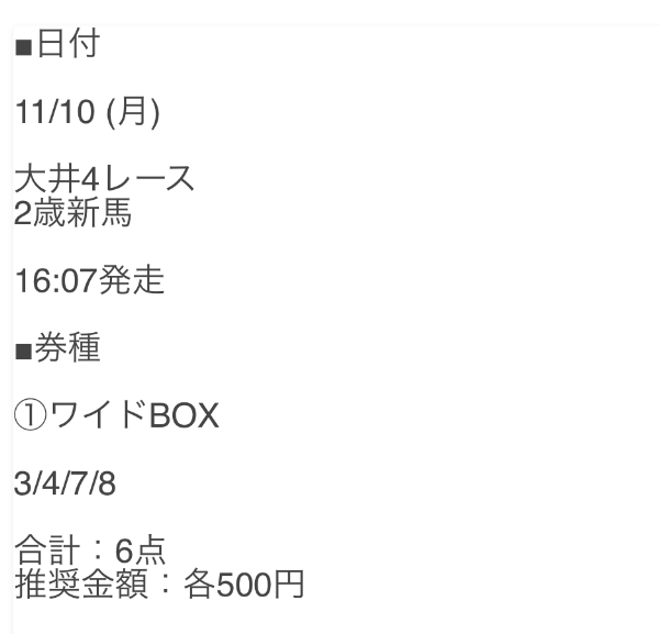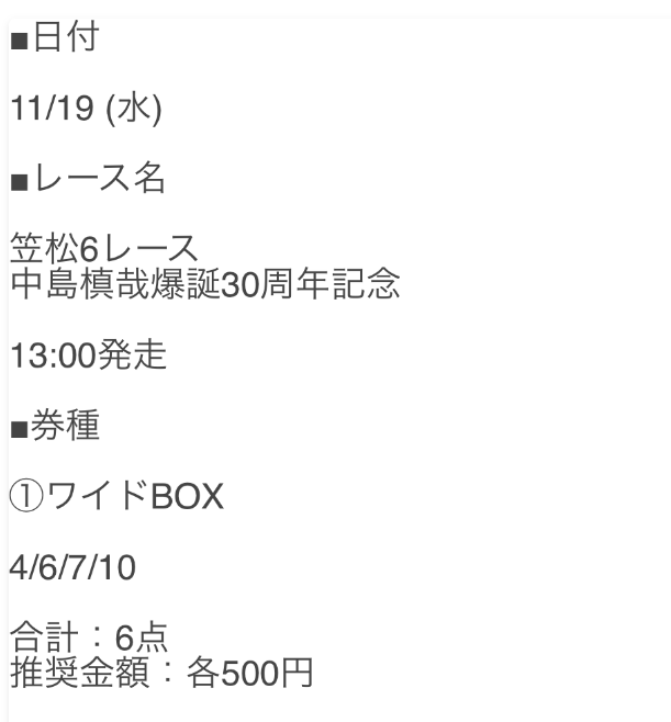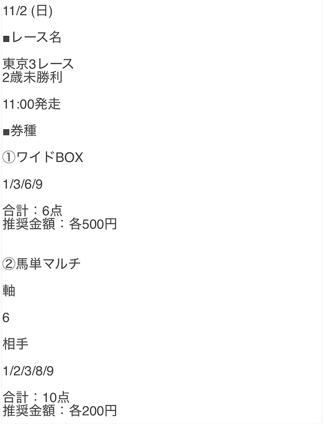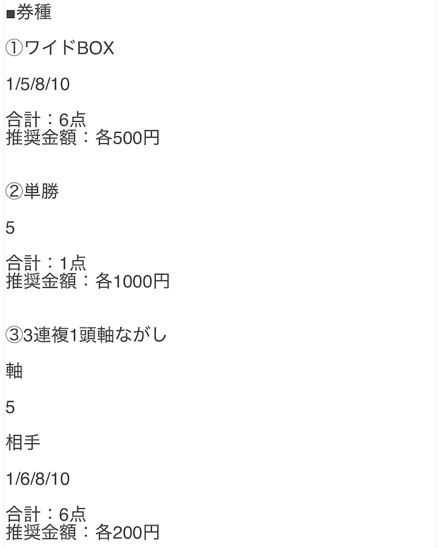 推奨金額の指定がありましたが、今回はキリよく1点1,000円で勝負していきます。
