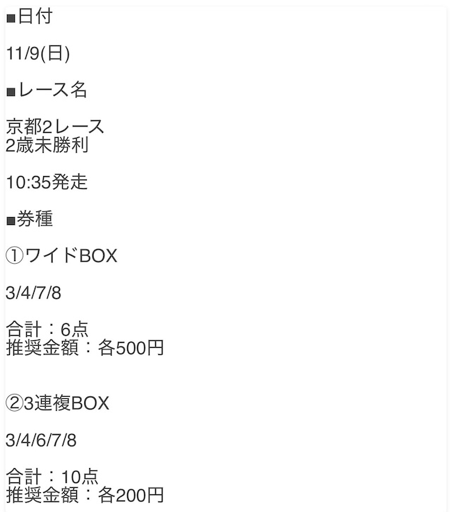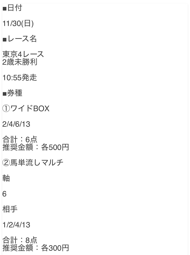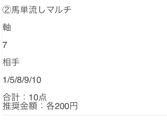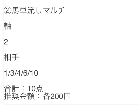 比較的セオリー通りで悪いことではないのですが、シンプルに単純すぎて驚いたのと万が一に穴馬が1頭でも好走すれば不的中になってしまうので、そこは不安要素でもあります。