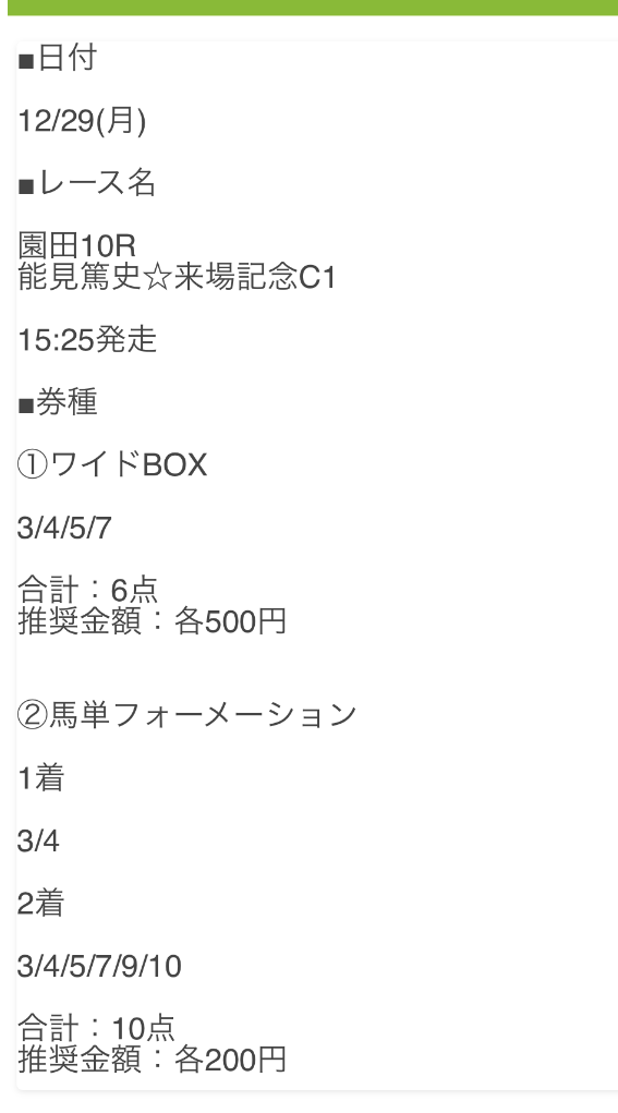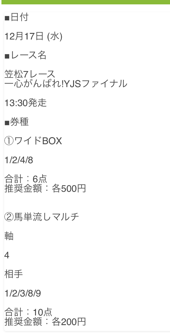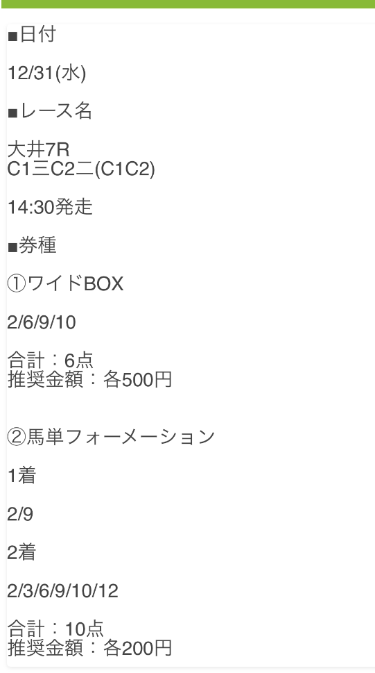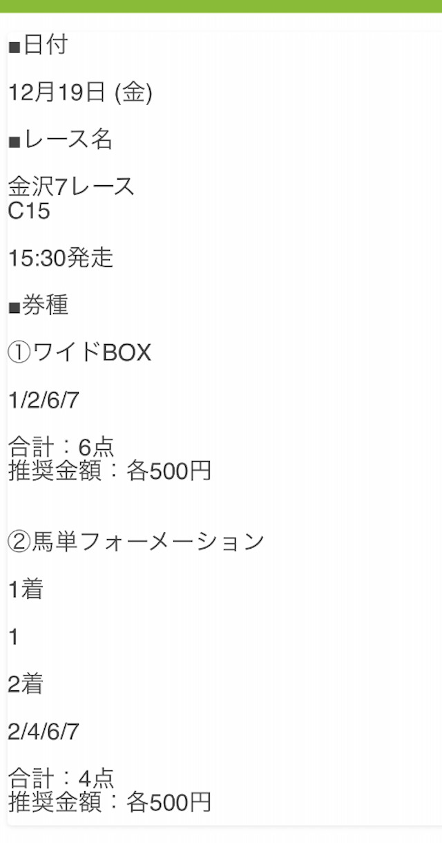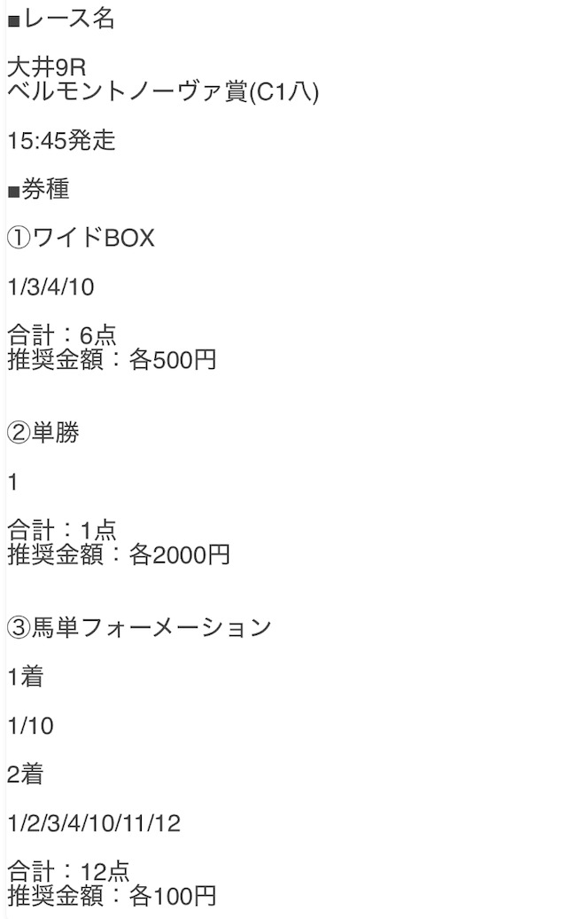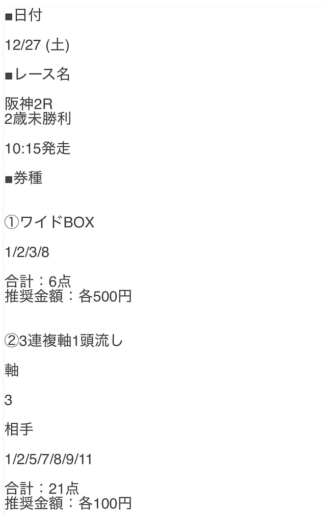公開された買い目はこちらです。