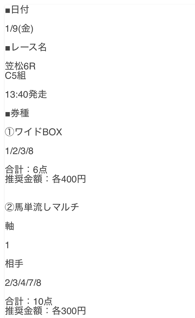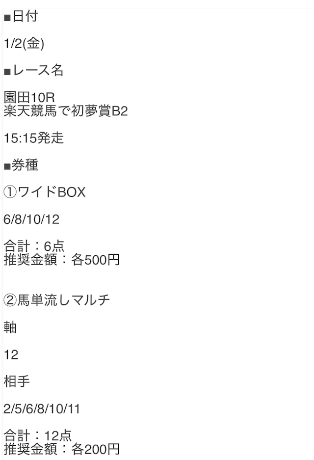 | 2025年1月30日 | 【一騎当選】 通常16,000円 ⇒ポイント割引12,000円 | 地方 | 3連単 | 【📷】 | 544,100円 | ◯ |