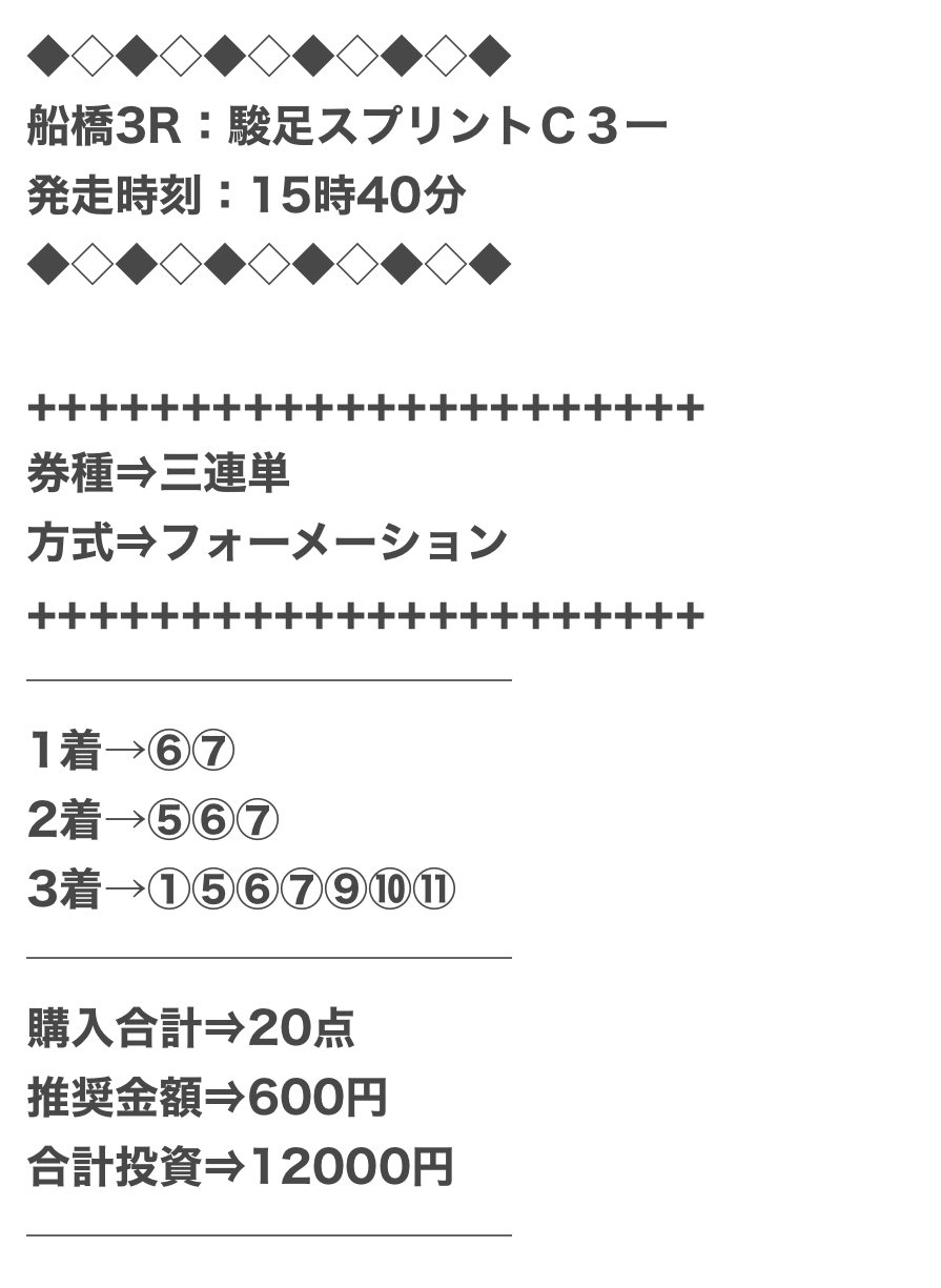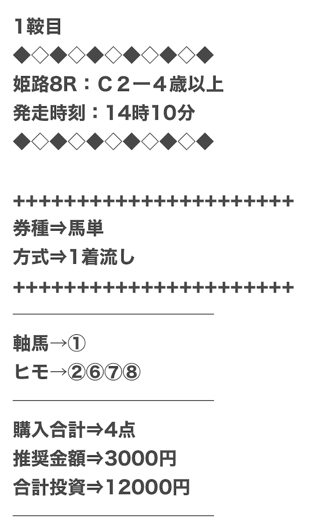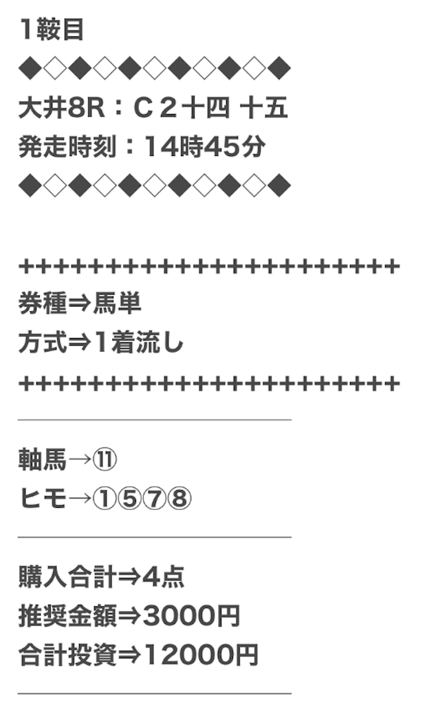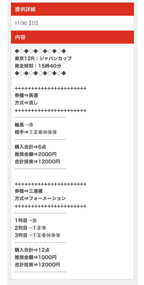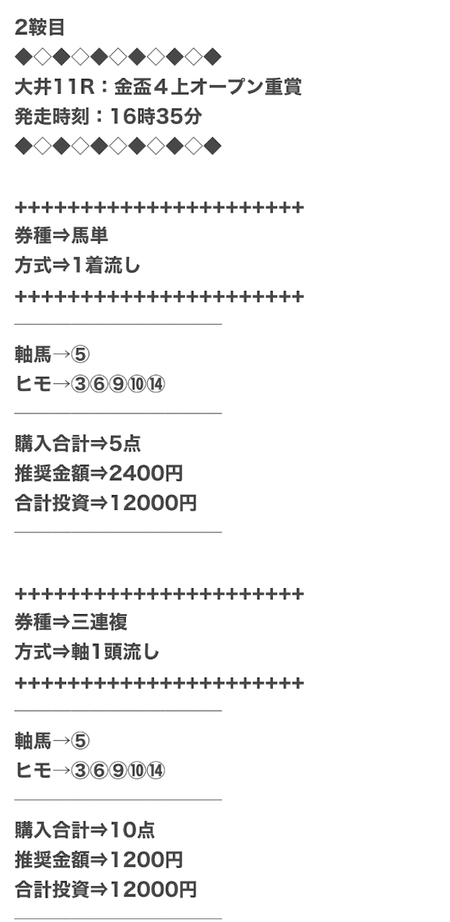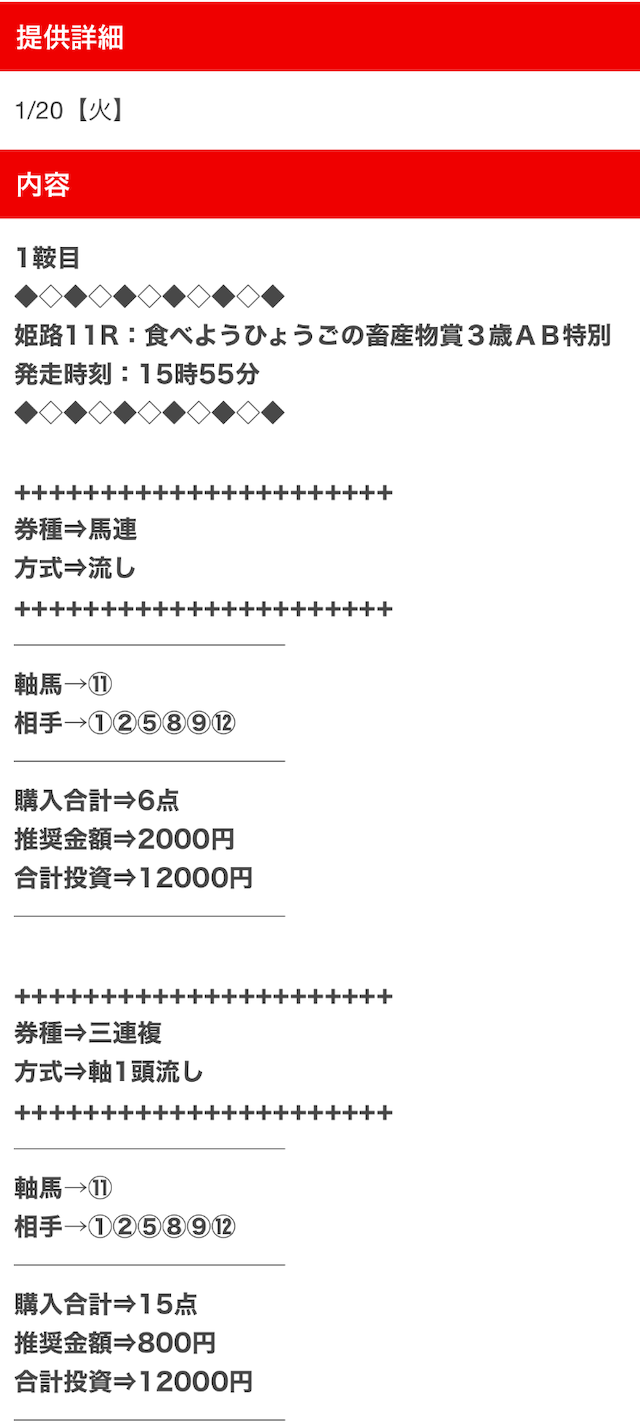 券種は馬連と3連複がメインで、価格は12点で収まるような買い目を公開。