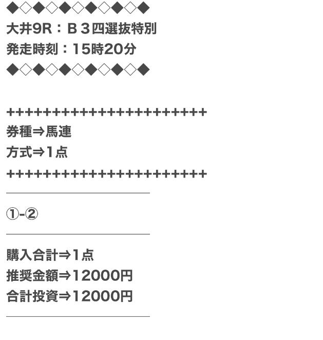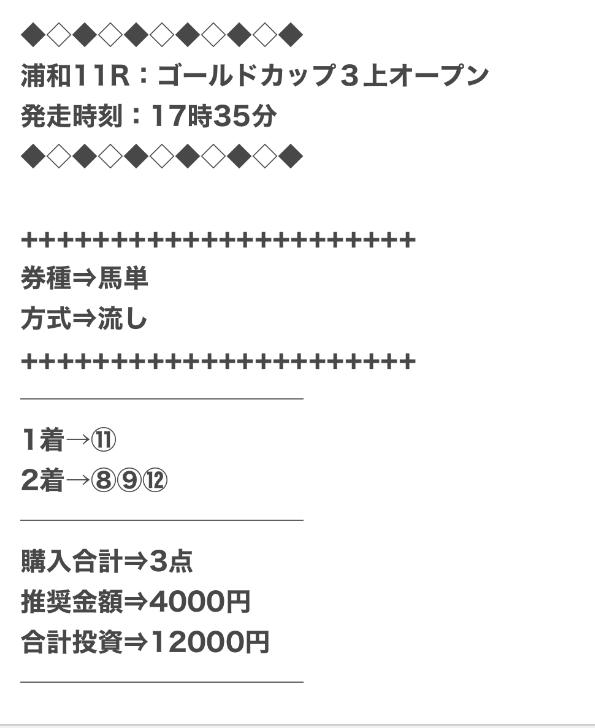 | 推奨投資金額 | 10,000円前後(12点以下) |