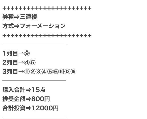 印や雑なボックスなどではなくかなり具体的に提示してくれているので、検証は買い目も投資も丸のりで行っていきます。