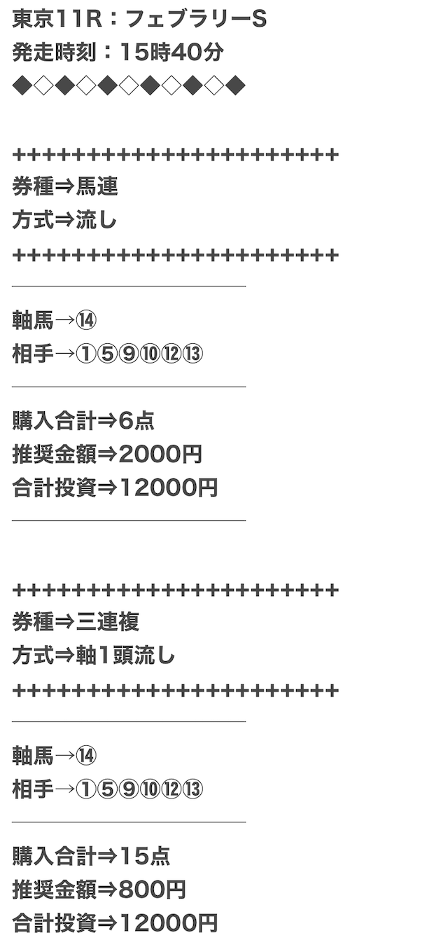 - 2025.02.15無料予想で1撃278,040円の払い戻し獲得!