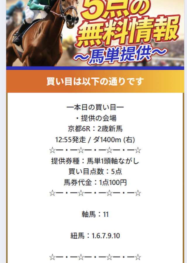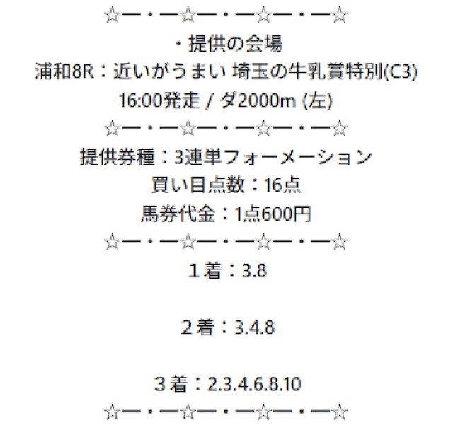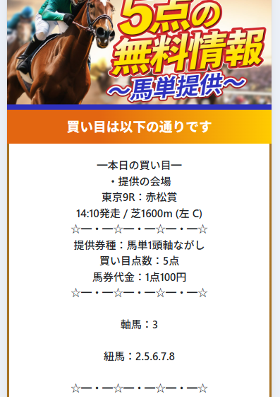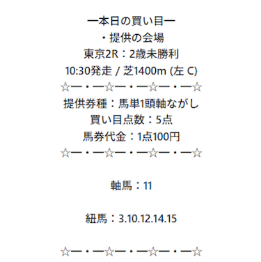 まずは実際に公開される買い目の例をご覧ください。