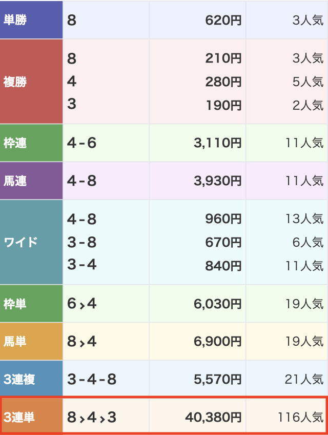 403.8倍のオッズが付き、獲得した払戻金は403,800円!
