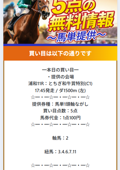 | 無料予想 | あり(毎日公開) |