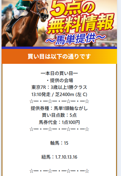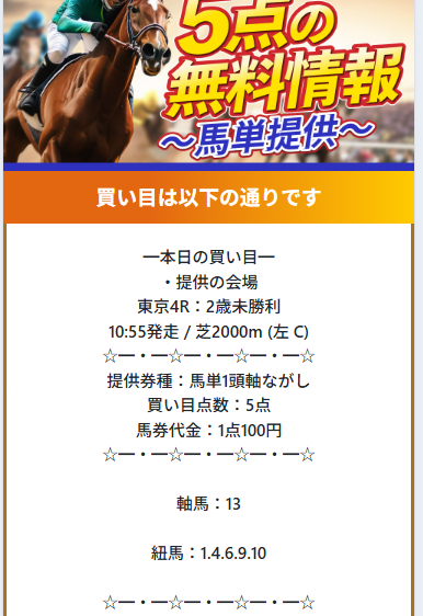 効率的に稼ぎたい方には特にピッタリなので、ぜひこの機会にまずは無料予想から受け取ってみてください!