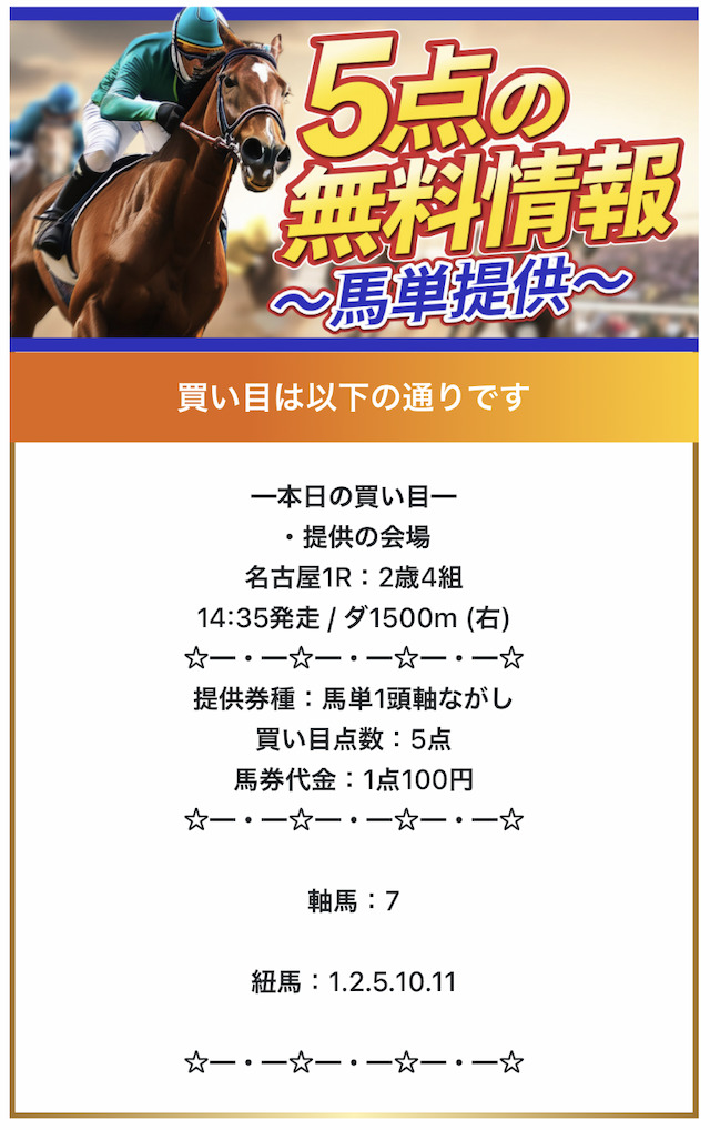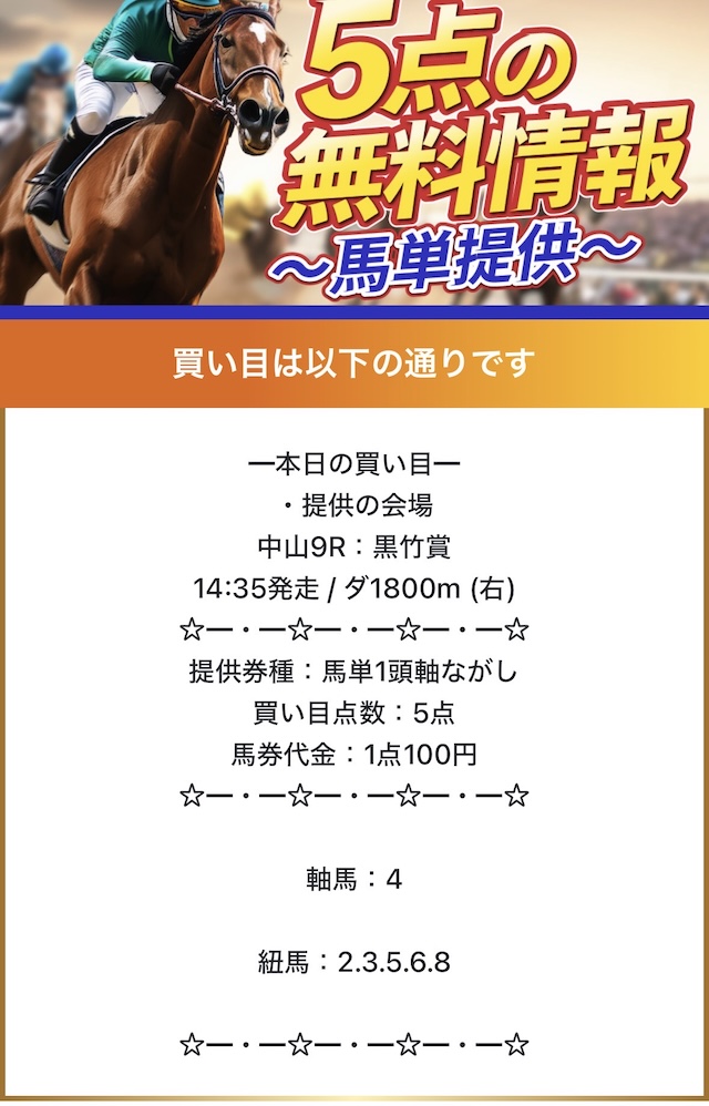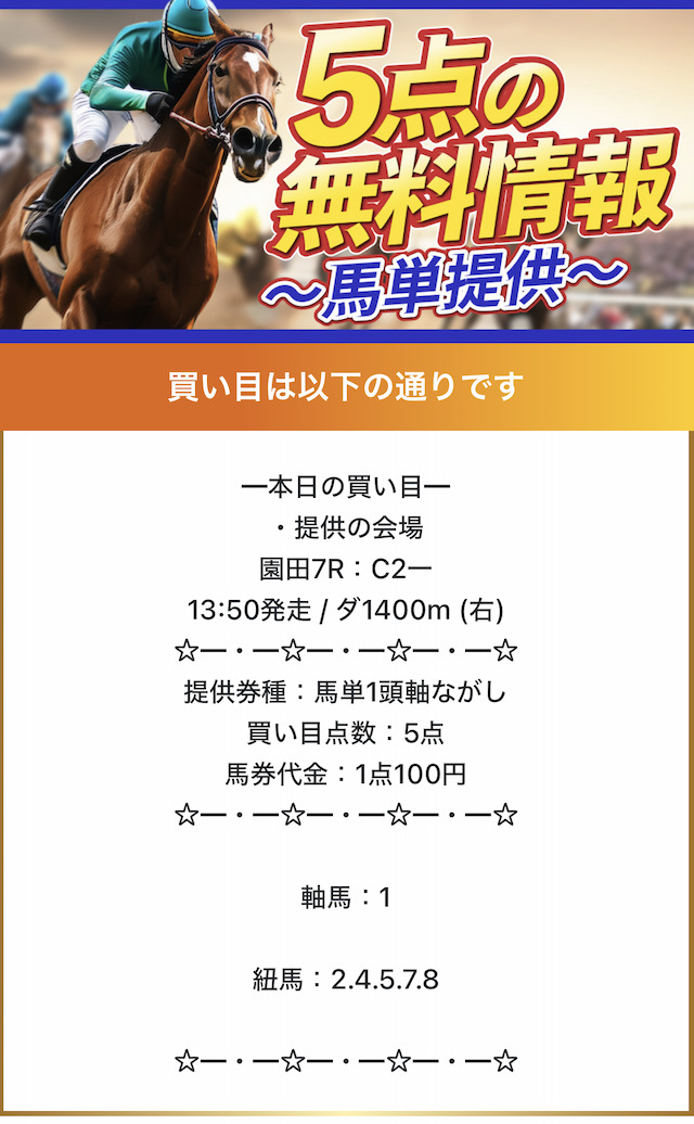 まずは、実際に提供された無料予想の詳細をご覧ください。