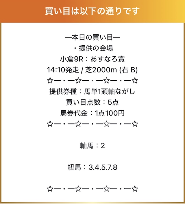 ここ二週間ぐらい予想使ってるけどめちゃくちゃ勝てる!これからもこの勢いで頼みます。