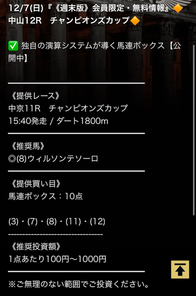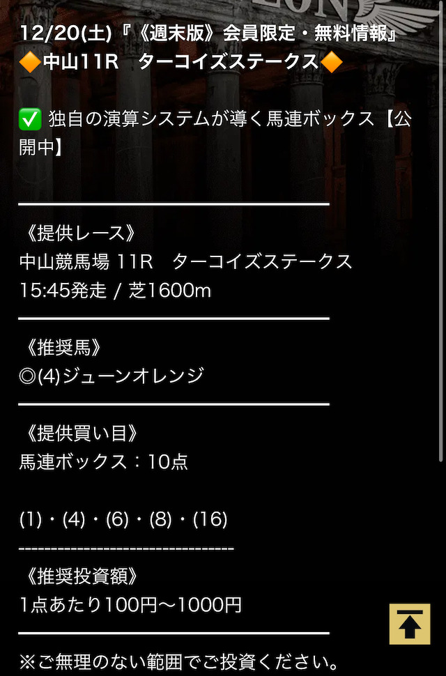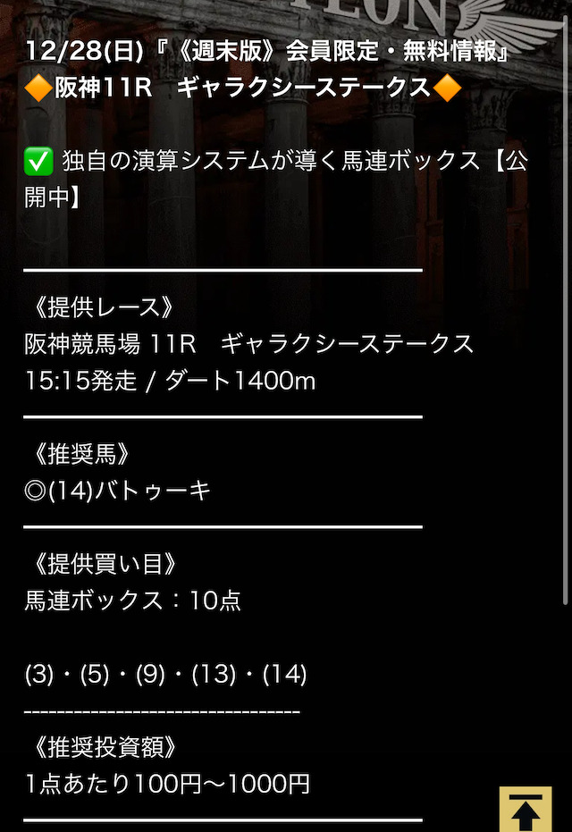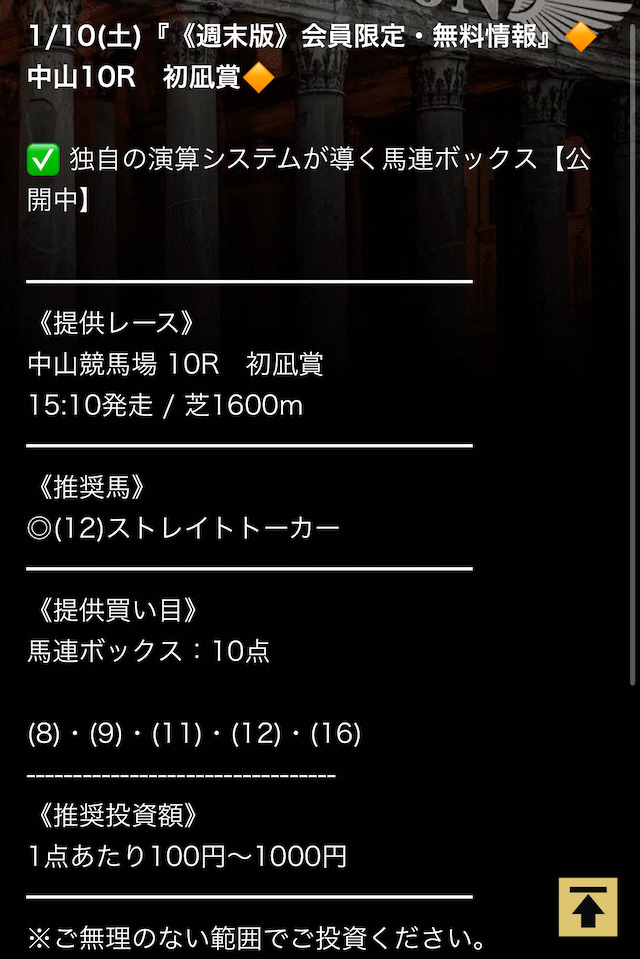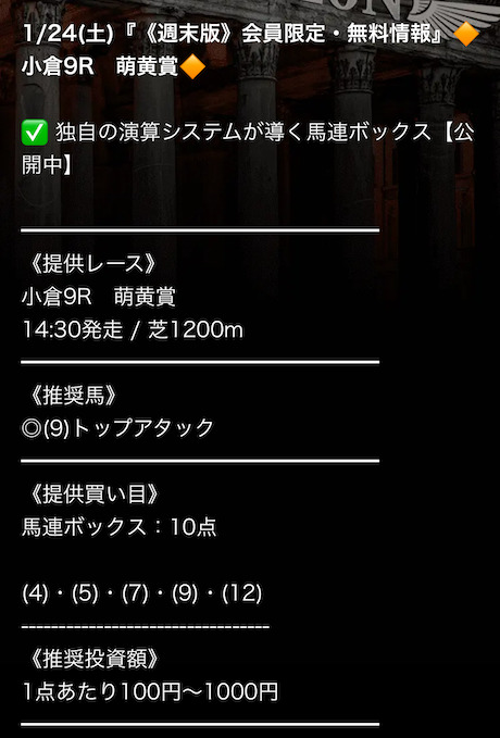 予想を受け取るだけなら無料でできますので、まだ利用していない方はこの機会にチェックしてみることをオススメします!