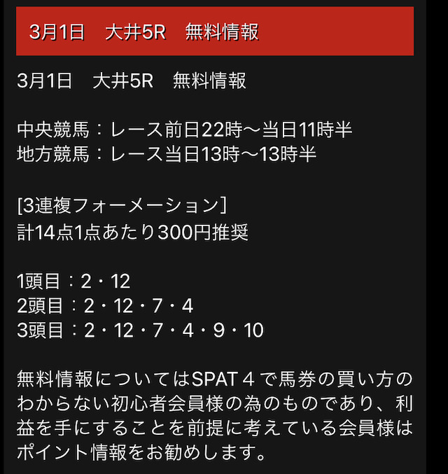 さらに、土日は1日2鞍の予想が提供される場合も。