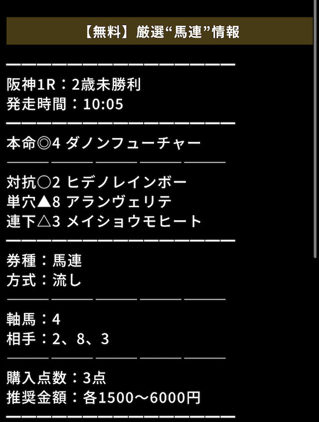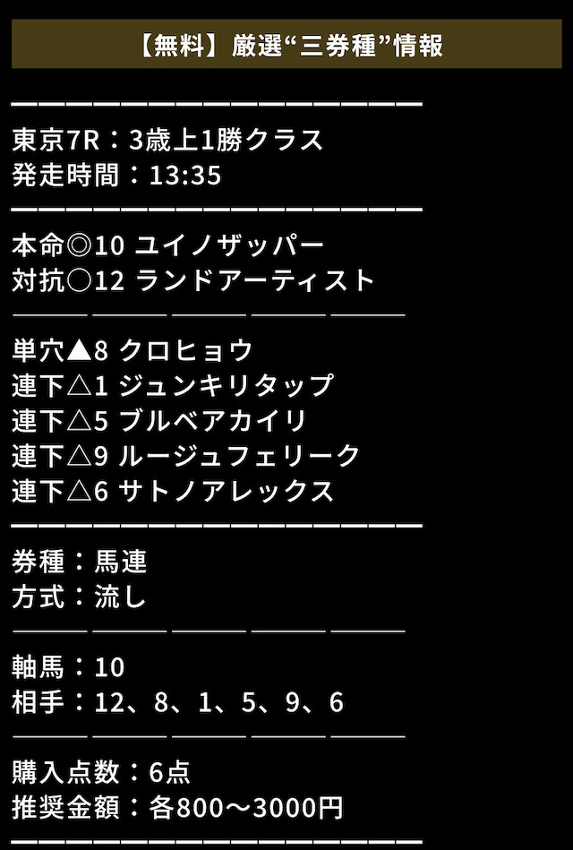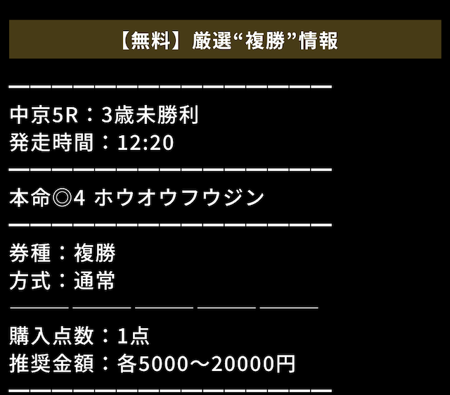 無料情報とはいえ馬券代は自己負担であるため、自身の無理のない範囲で勝負するのが鉄則です。