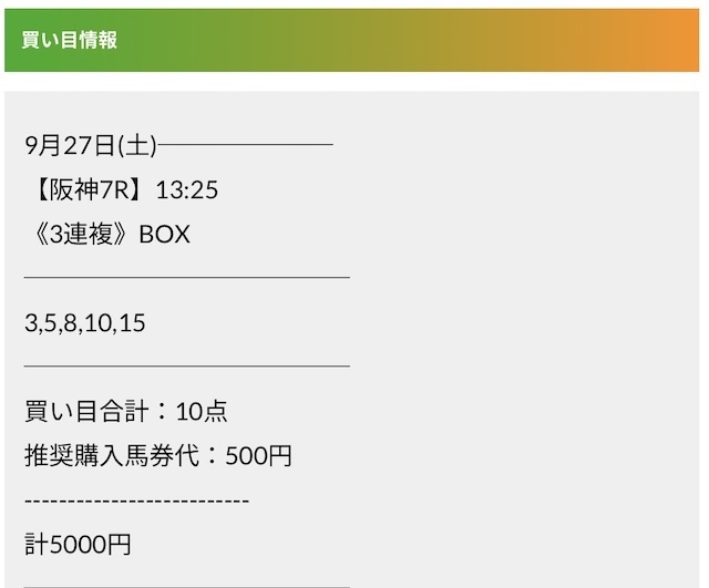 公開された買い目と、バクシスが選んだ馬の概要をご覧ください。