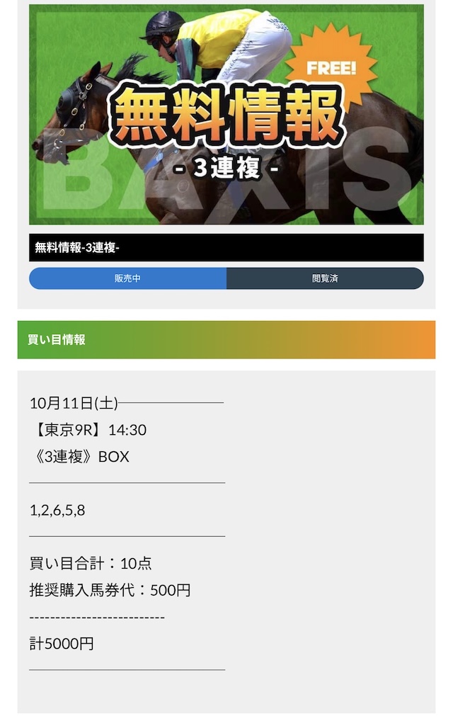 加えて、無料予想の精度も有料予想に負けず超優秀。