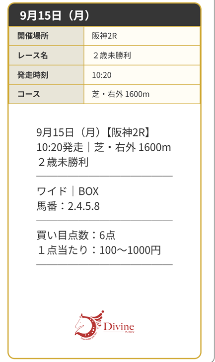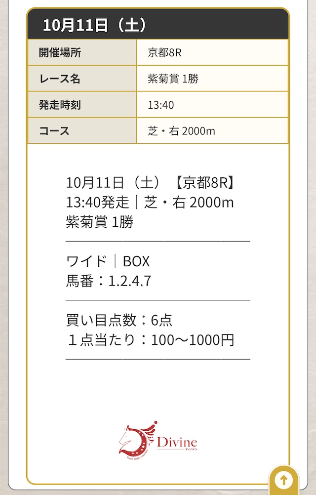 週末はディバインを利用して、ぜひ皆さんも勝ち星を掴んでみてください!