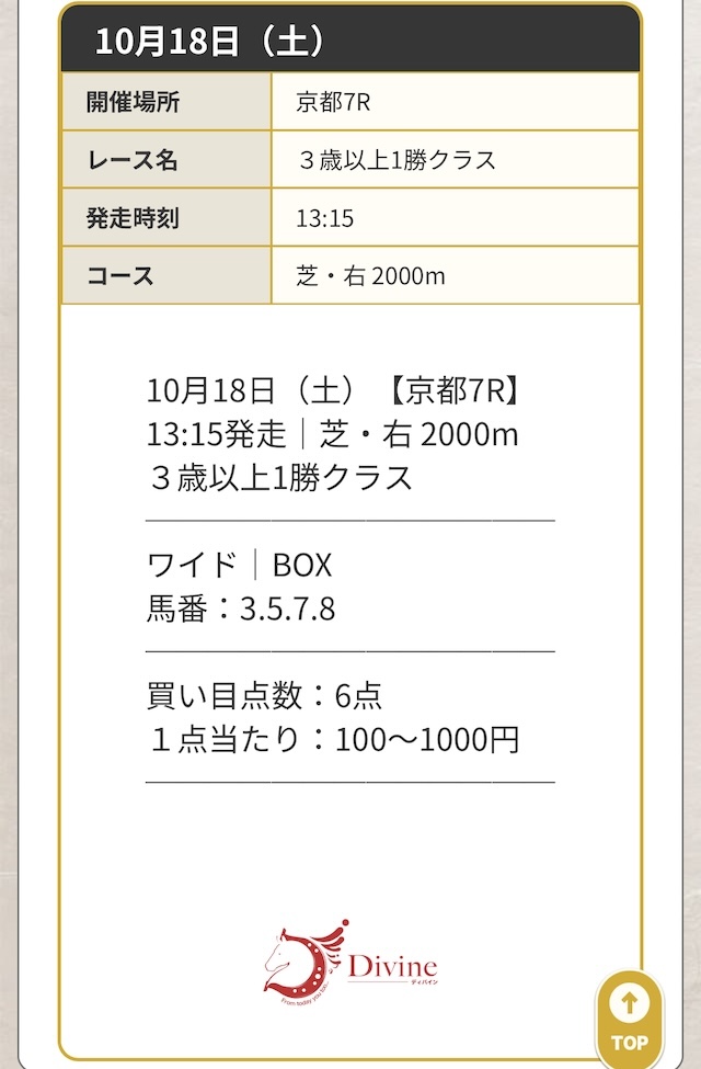 一見、抽象的な部分しか見えないため信憑性には欠けると思ったのですが、実際にディバインの予想に参加してきて、信用に値する結果を見てきました。