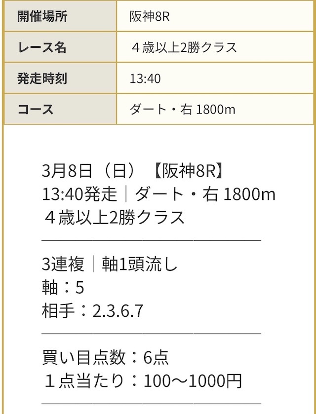 登録して買い目を受け取るだけなら無料で行えますので、ぜひご自身の目で良し悪しを判断してみてはいかがでしょうか。