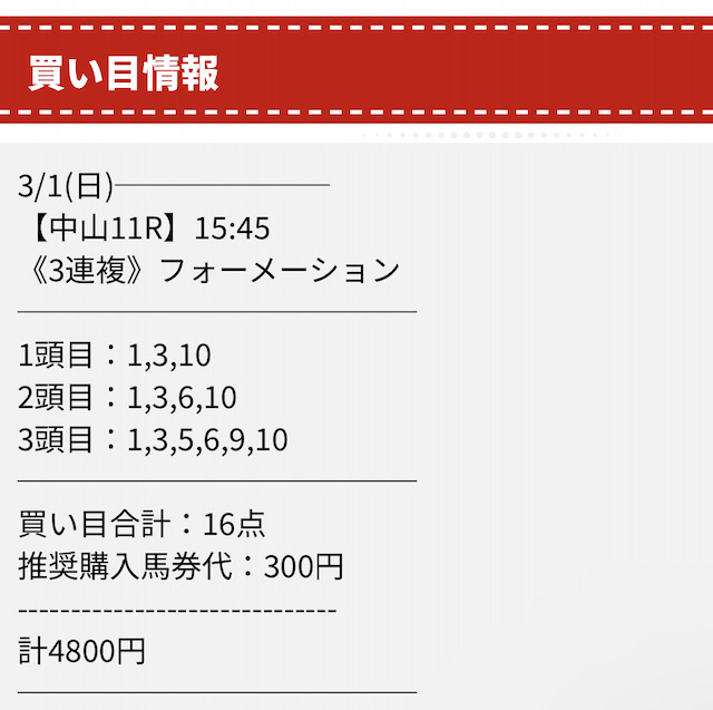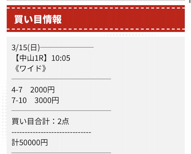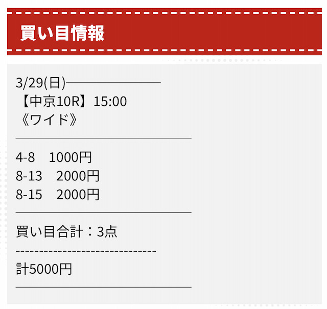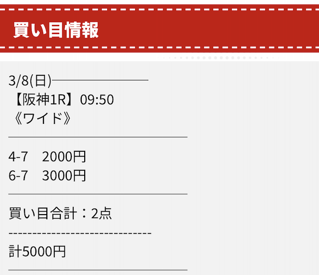このサイトはとにかくコスパがいいね。ワイドだけで数戦参加してるけど合計で5万ぐらい稼げてる。あとは欲を言えば、地方競馬予想も出してくれたら完璧かな。