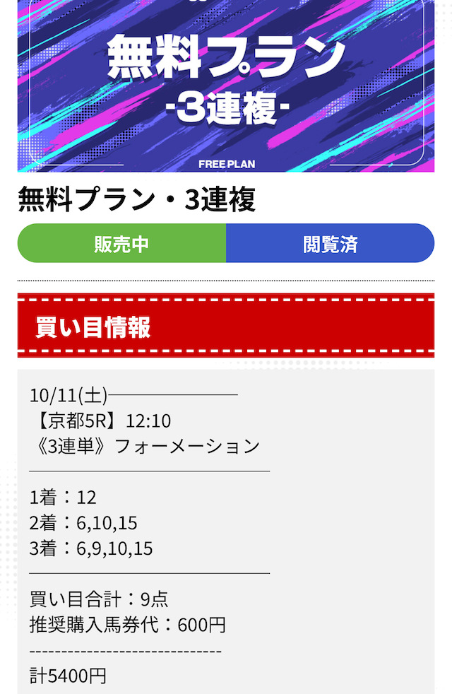 無料予想としては十分すぎる払い戻しなので、その点は安心して利用すると良いでしょう。