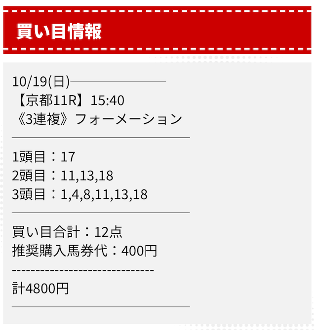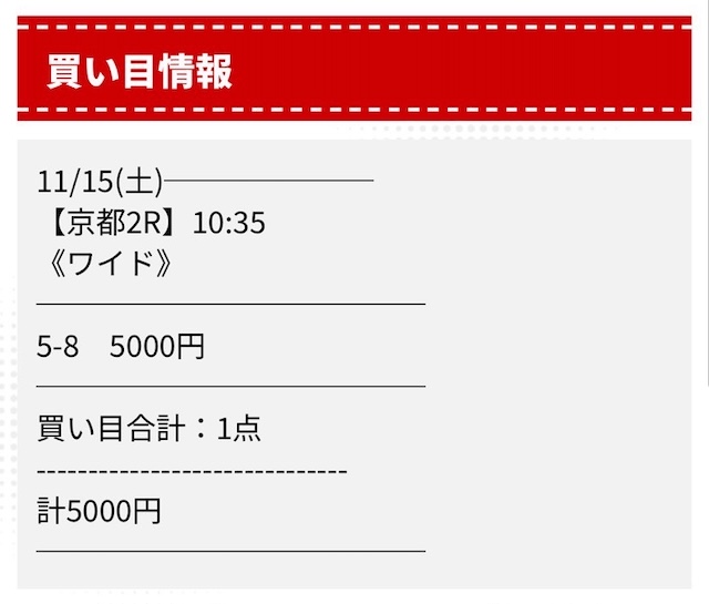 このサイトはとにかくコスパがいいね。ワイドだけで数戦参加してるけど合計で5万ぐらい稼げてる。あとは欲を言えば、地方競馬予想も出してくれたら完璧かな。