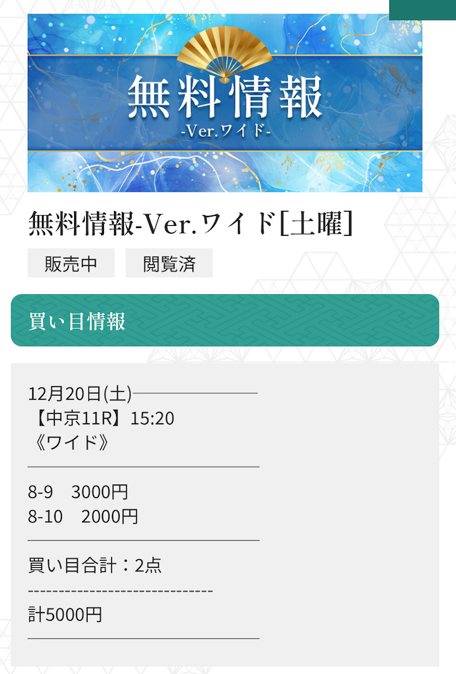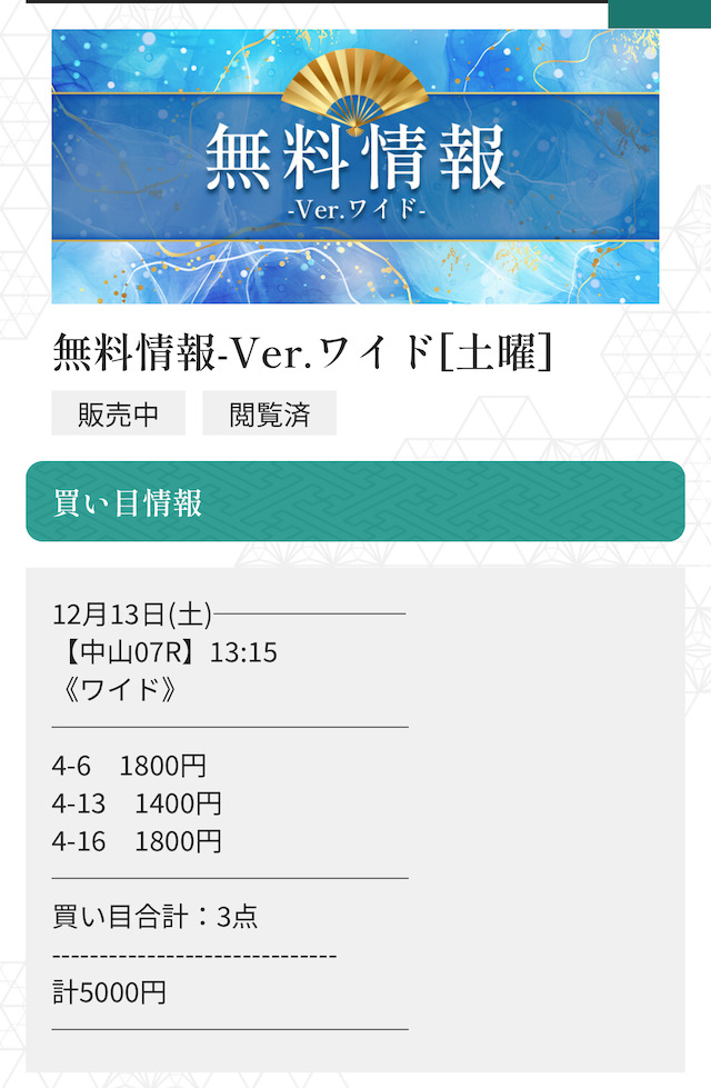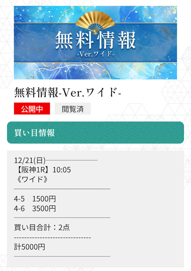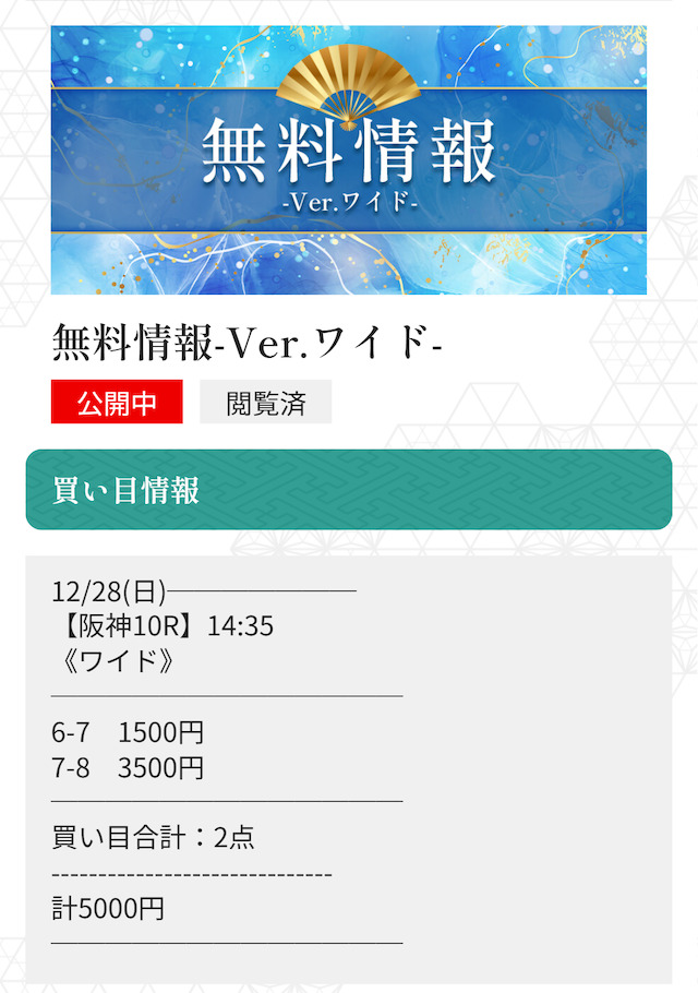 - 無料予想の精度が抜群に高い!ワイドはコスパで3連複は配当型!