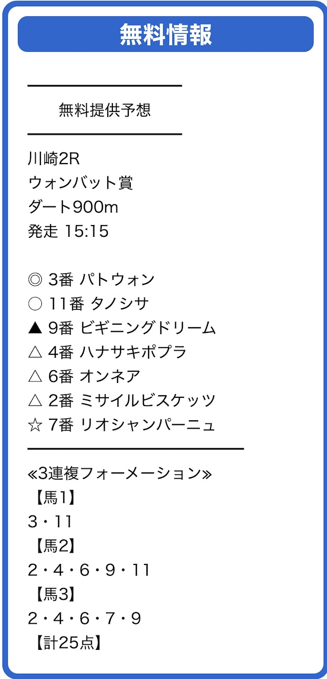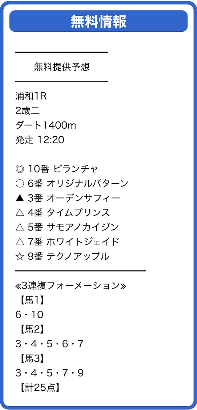 - 2025.10.25無料予想で83,100円の払戻金を獲得!