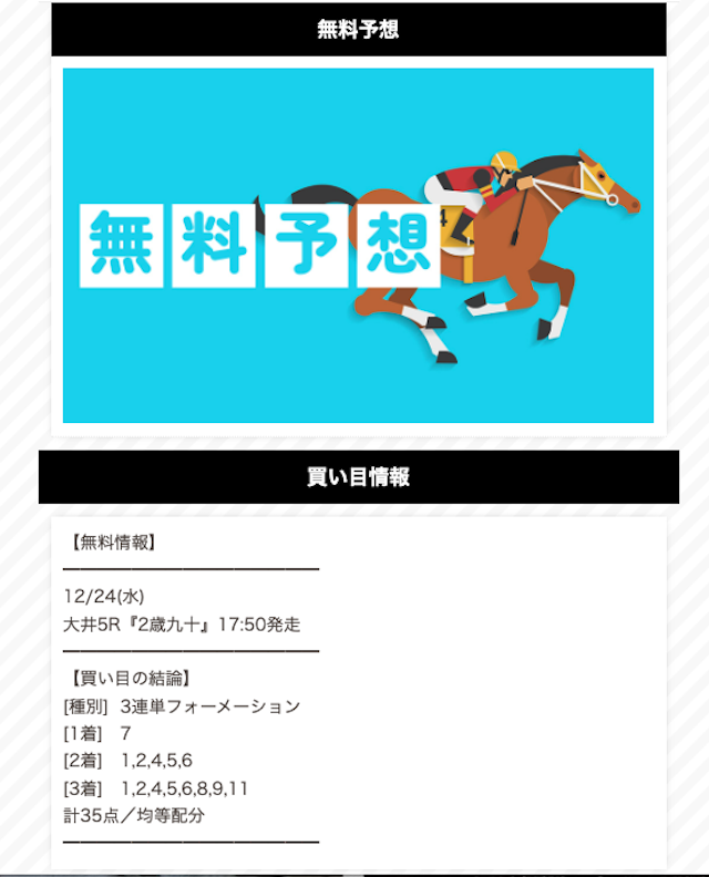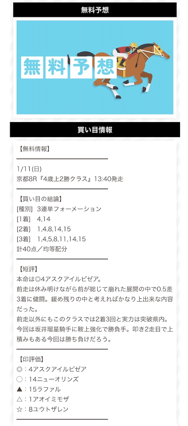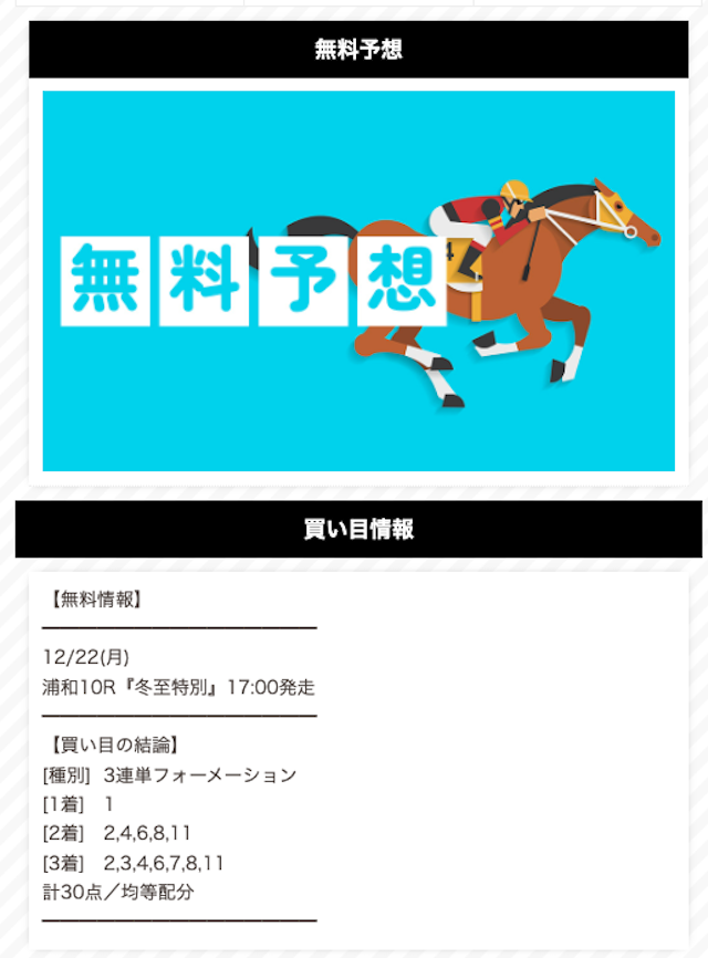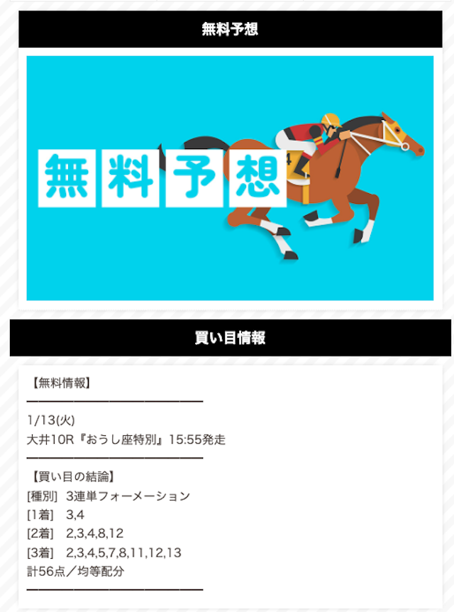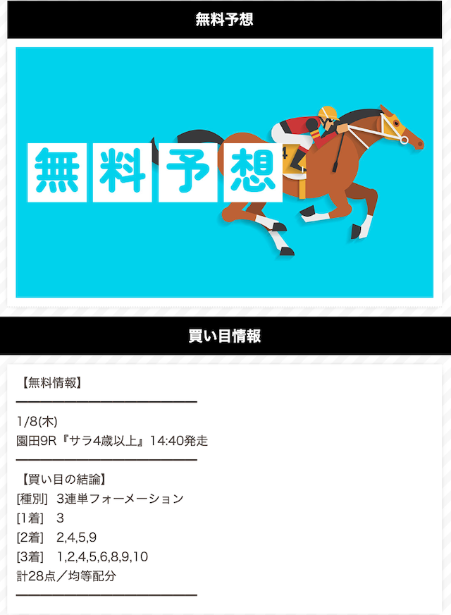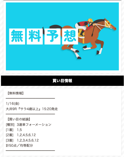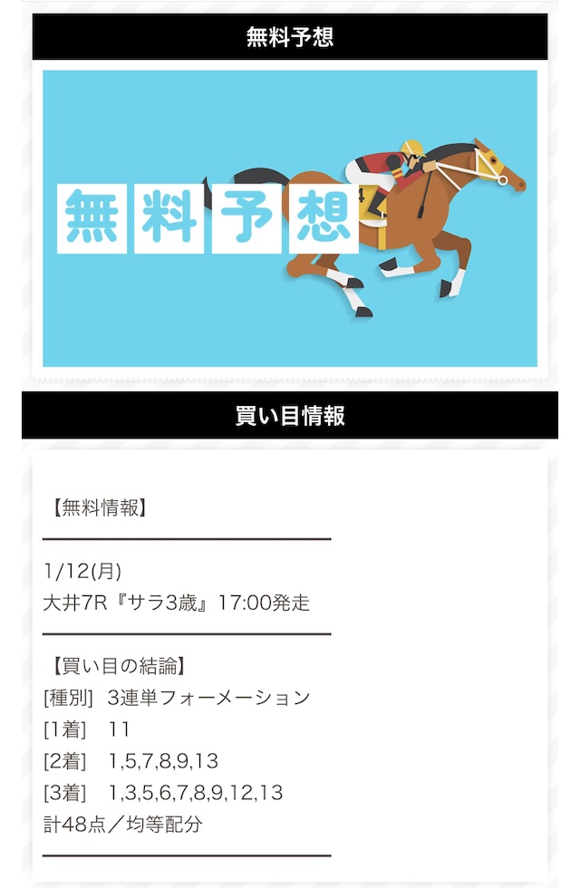 無料予想といえば競馬予想サイトにおけるお試しとも言えるコンテンツ。