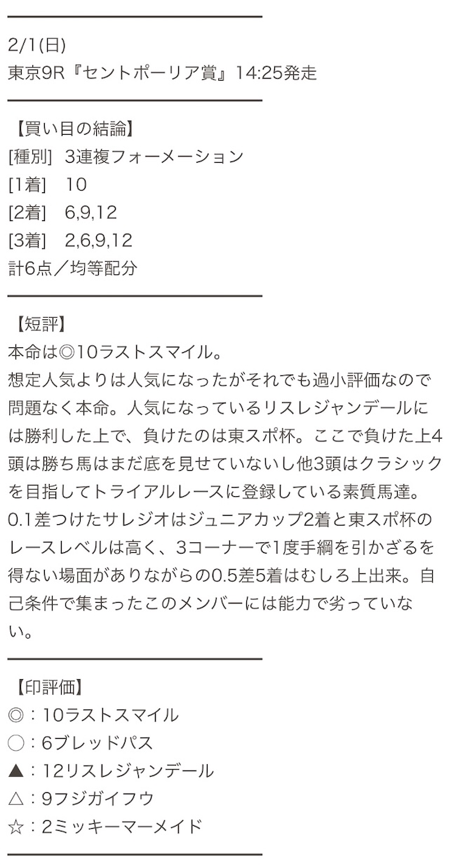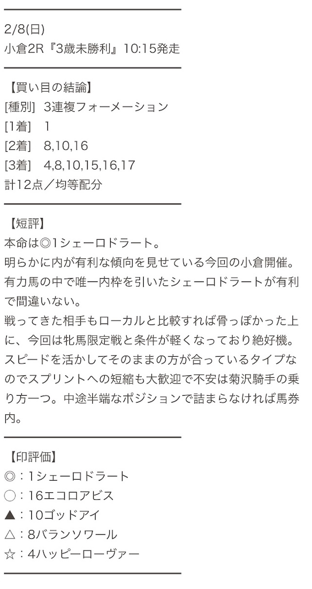 - 中央競馬・地方競馬問わず予想の安定感がある
