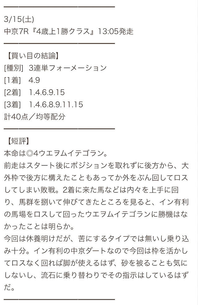 さっそく公開された買い目と、原点が選んだ馬の概要をご覧ください。