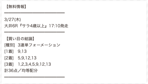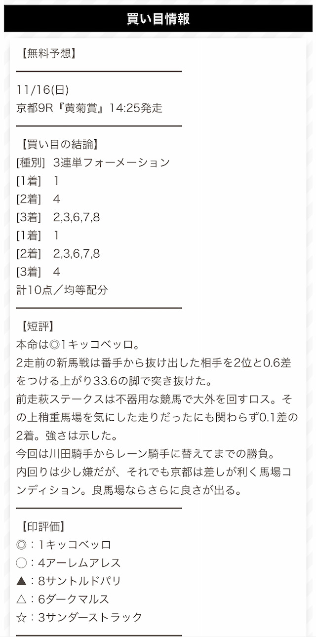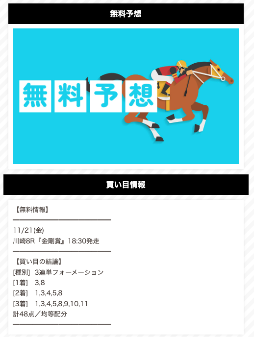 - 中央競馬・地方競馬問わず予想の安定感がある
