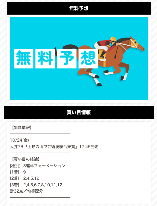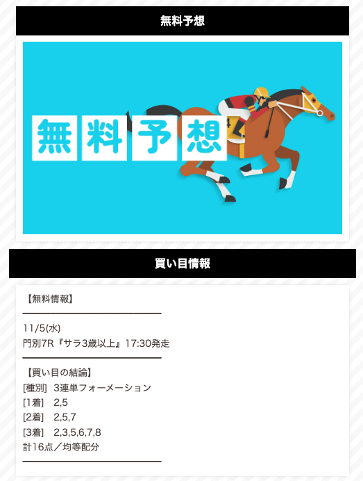 無料予想といえば競馬予想サイトにおけるお試しとも言えるコンテンツ。
