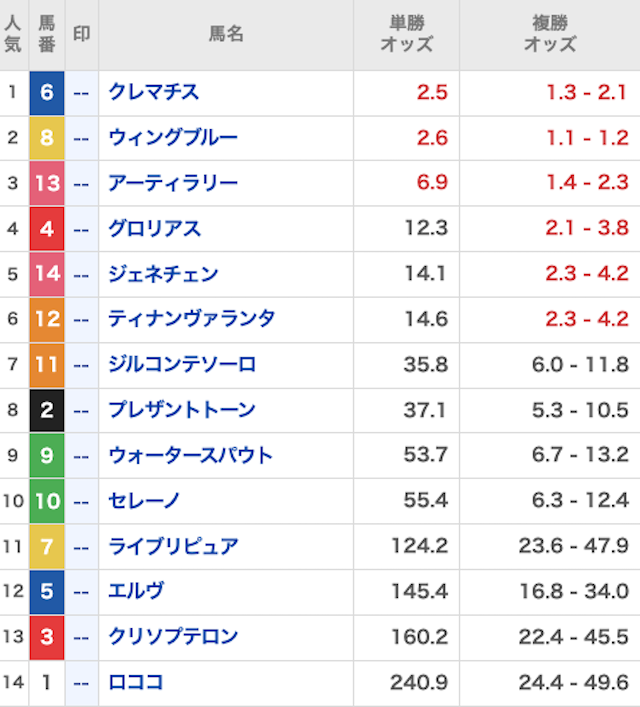 | ⑥クレマチス | 1番人気 | 2.5 倍 |