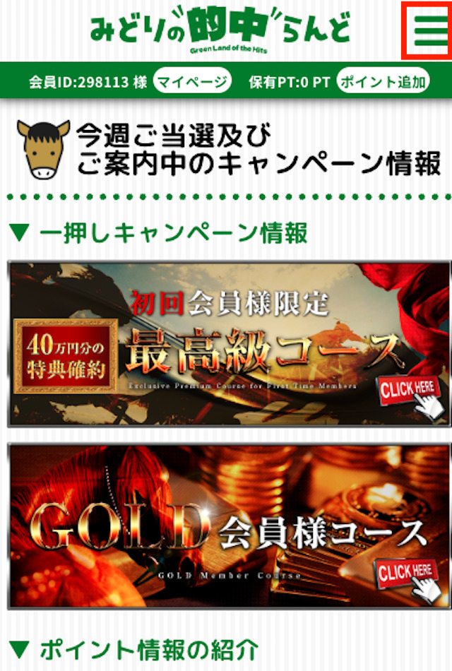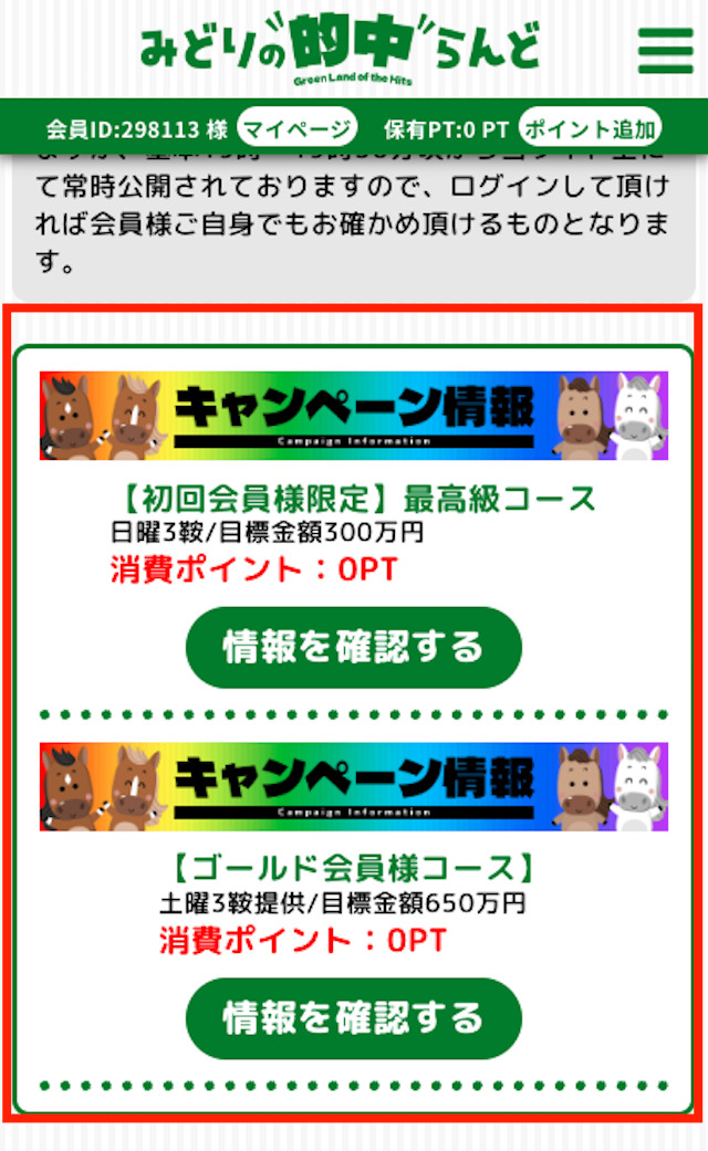 今回レビューしたのは、「みどりの的中らんど」という競馬予想サイト。