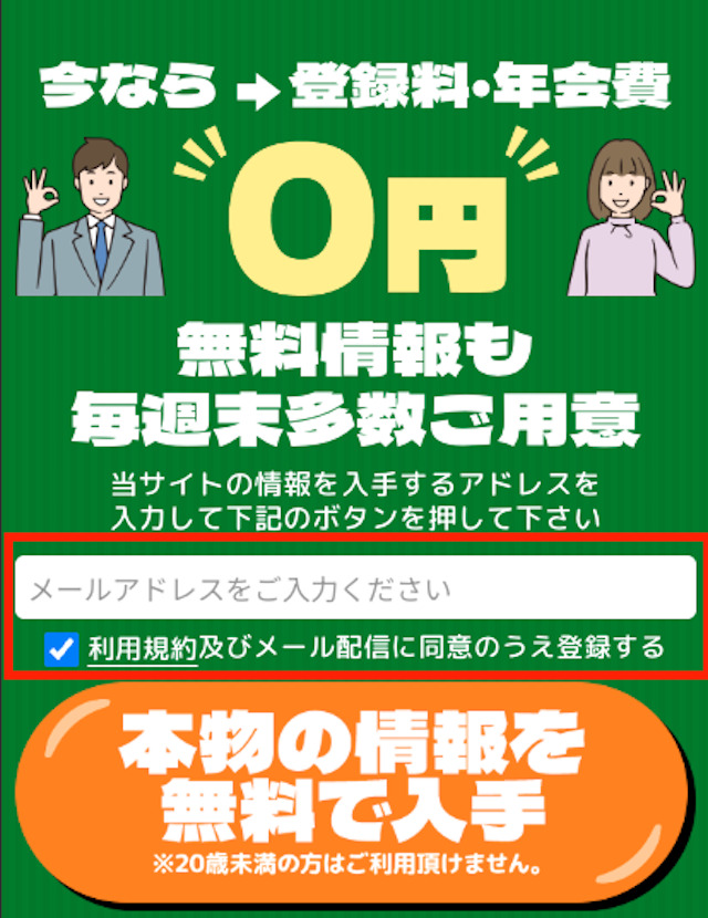 - 公式サイトに設置されている「メールアドレス入力項目」にご自身のアドレスを入力
