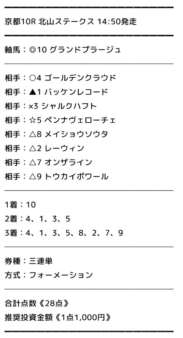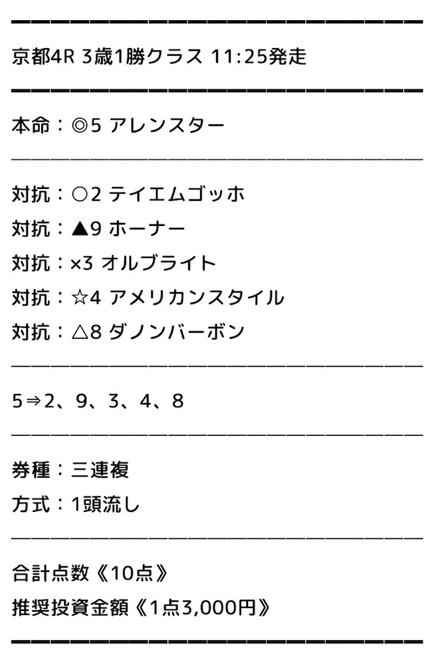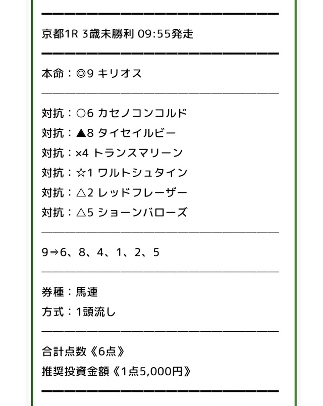 無料でこれなら十分じゃないですか? 京都2R、単複そのままで的中! 回収5万オーバーは資金作りとしては上出来!! 次も期待します。