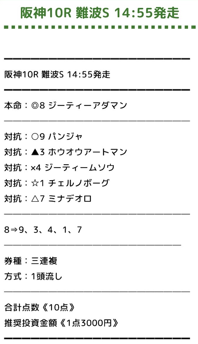 まずは、実際に提供された無料予想の詳細をご覧ください。