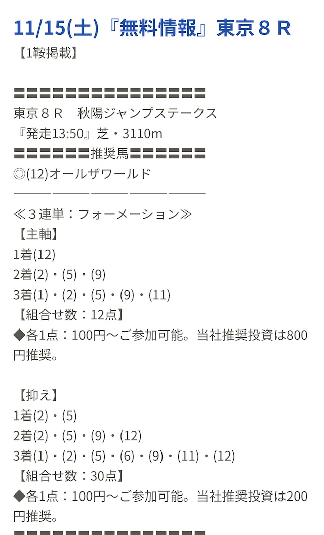 口コミ評価高くて正直嘘だろって思ってたけど、まじでちゃんと当たるとは思わんかった。しかも今まで参加したレースならすと多分5,6割は当たってる。3連単でこれは超優秀だろ。