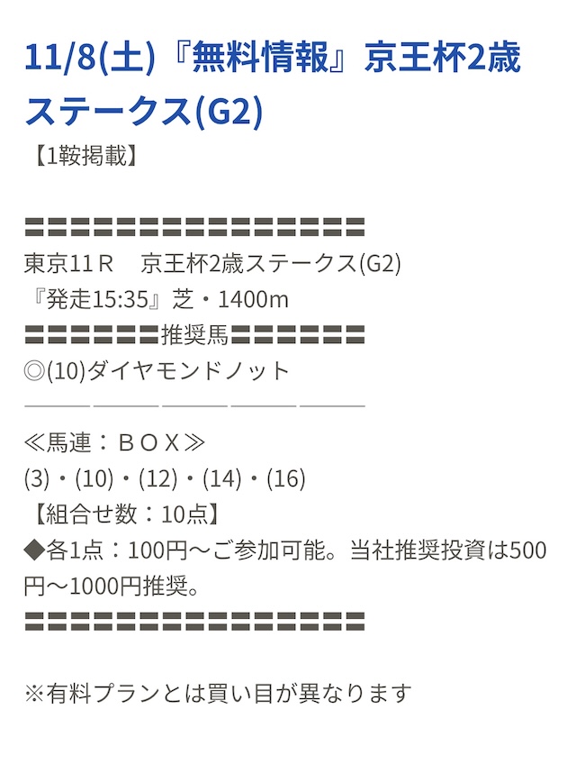 総じて無料予想・有料予想どちらもかなり優秀で、利用しないのがもったいないと感じるほど。