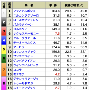 最低オッズでも309.2倍になっていることから、的中させすればトリガミや薄利の心配はありません。