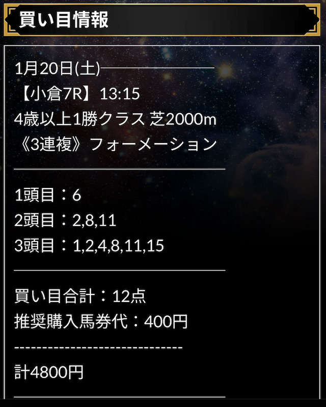 でも外れた時も惜しかったから、なんだかんだ予想精度の高い競馬予想サイトなんだろうっていうのは薄々感じてます!