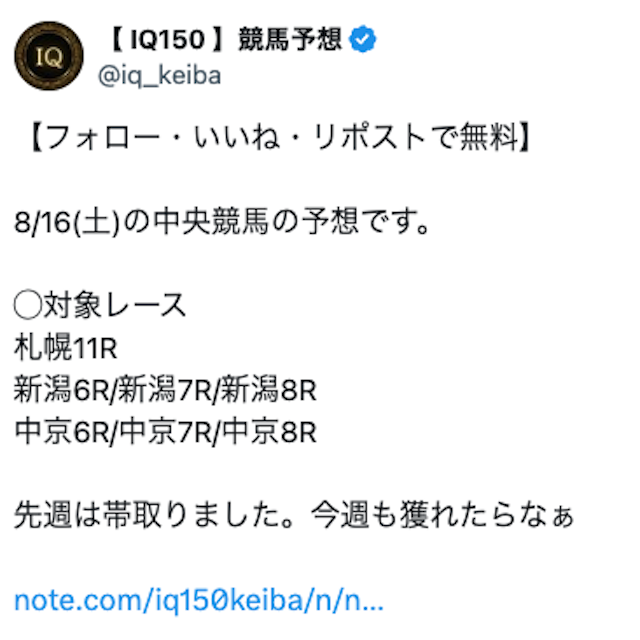 | アカウント名 | @iq150keiba | @iq_keiba | 公式LINE | iq150keiba |