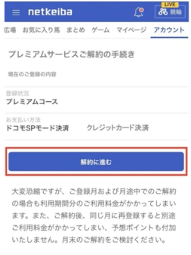 - ページ下部にある”プレミアムサービスを解約する”を都度タップ