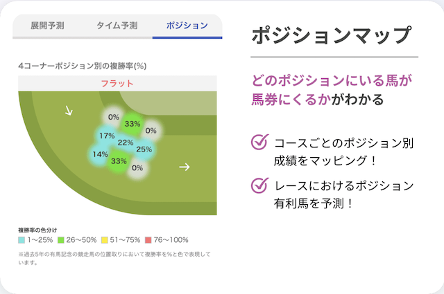 | ポジションマップ | どのポジションにいる馬が 馬券にくるかがわかる |