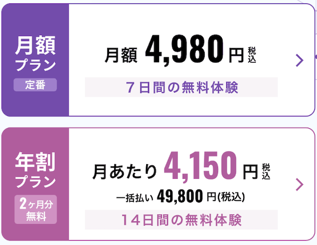 | 月額4,980円 (年割4,150円) | 最大14日間の無料体験 | 2025年1月29日 |