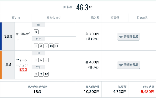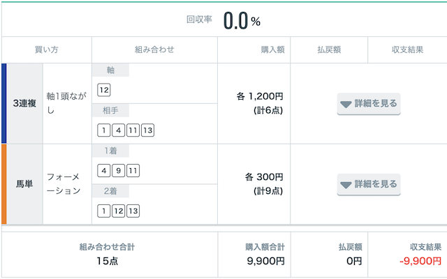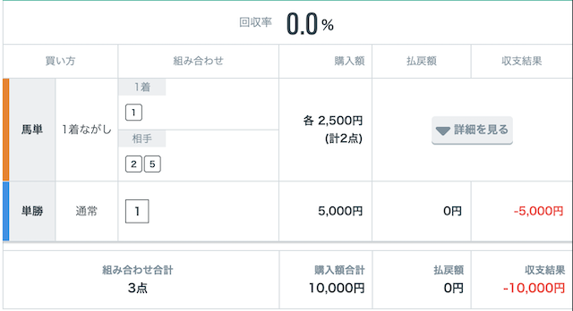 | 馬券収支 | ◯ | ◯ | ◯ | ◯ |
